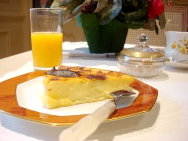 Ingrédients : for the mixture : flour butter, sugar, milk, eggs, garnish : vanila sugar, malaga raisin prunes.