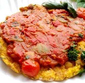 Ruhreier, tomaten, pimientos, Schinken aus Bayonne, pimiento de Espelette.
