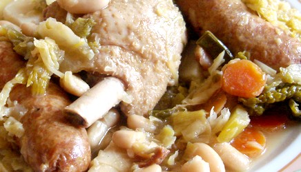 garbure: potée am Kohl, Rüben, Möhren, Bohnen, Kartoffeln, Rindfleisch, kann die Suppe gesondert mit geriebenem Käse gedient werden.