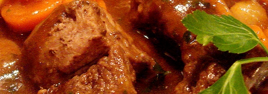 Recette d’une spécialité française, le boeuf bourguignon, recette typique et traditionnelle de bourgogne. La cuisine traditionnelle française et les vins de bourgogne proposent ce plat typique de la gastronomie française. Plat en sauce, au menu des restaurants touristiques de Bourgogne. Ce plat est devenu un plat national. La viande de boeuf charolais est un morceau noble dans un plat facile de recette familiale.